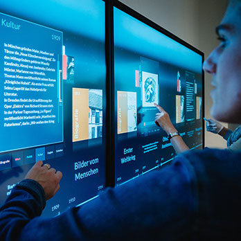 Mit einem multimedialen Ausstellungskonzept zeigt das Ernst Barlach Museum Ratzeburg Leben und Schaffen des Künstlers im historischen Umfeld: Eine digitale Timeline lädt ein, die politischen, kulturellen, werk- und lebensgeschichtlichen Ereignisse zu erforschen. Spielend können wir die Bilder, Filme, Dokumente aus 150 Jahren, die sich in einer 5,60 Meter langen Touchscreen Fläche verbergen, aufrufen. Wir erleben, auf welchen historischen Strukturen und kollektiven Erinnerungen unsere Gegenwart aufgebaut ist. Das dazu konzipierte Barlach Game macht Geschichtserfahrung lebendig und aktiviert unser Zeitbewusstsein. Poetische Filme zu den Themen „Mensch und Natur“ ebenso wie „Mensch und Welt“ verbinden als Rauminstallation die Kunstwerke Barlachs mit unseren aktuellen Fragen, laden ein, Ursachen und Perspektiven zu reflektieren. Dokumentarische Filme zum Schriftsteller Barlach und zum Einfluss der Heimat Ratzeburg informieren über erstaunliche und bislang weitgehend unbeachtete Aspekte seines Lebens und Wirkens. Die interaktive Barlach-App führt zu persönlichen Begegnungen mit einzelnen Werken und zu individuellen Interpretationen.